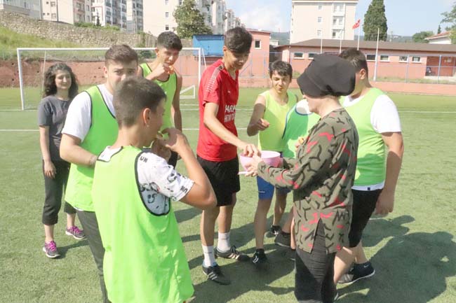 Kdz Ereğli Spor Kulübü başkanı Yıldız Filiz Tekinoğlu, idman sonrasında sporcularına kendi elleri ile hazırladığı börekleri ikram etti.