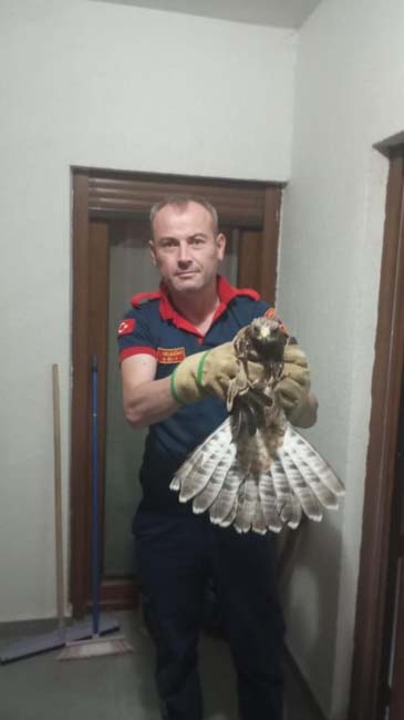 Olay yerine gelen itfaiye ekipleri eve giren şahini çıkararak doğaya bıraktı.