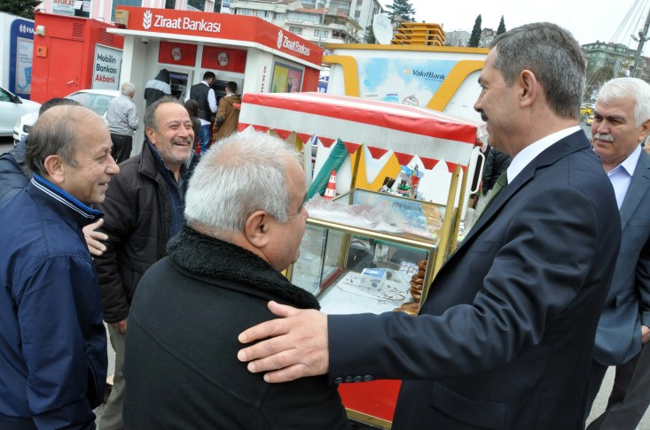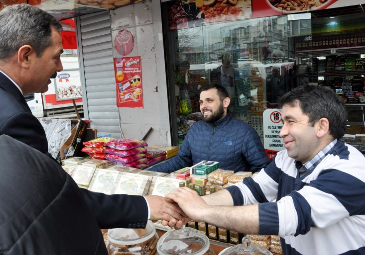 Karadeniz Ereğli Belediye Başkanı Hüseyin Uysal, mahalle gezilerinin ardından referandum turlarına şehir merkezinde de devam etti.