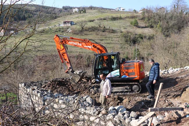 Kdz. Ereğli ilçesine bağlı Hasbeyler Köyü’nde geçtiğimiz yıl 8 Kasım’da elektrik kontağından çıkan yangında Kadriye, Erdal ve Erol Ergenekon’un yaşadığı ev tamamen yanarak kullanılamaz hale geldi. Kış ayında evsiz kalan aile Hasbeyler Köyü Muhtarı Hasan Duman tarafından geçici olarak köyde kullanılmayan bir eve yerleştirildi. Hasbeyler Köyü Muhtarı Hasan Duman ve Hasbeyler Köyü Yardımlaşma ve Dayanışma Derneği Başkanı Mehmet Çivici öncülüğünde hayırseverlerden gelen yardımlarla Ergenekon ailesine yeni bir ev yapılması için çalışmalara başlandı. Hafriyat ve duvar kısmı tamamlanan ev için önümüzdeki günlerde temel atma aşamasına geçileceği belirtildi. Hasbeyler Köyü Muhtarı Hasan Duman, Ergenekon ailesini Kurban Bayramı’nda yeni evlerine kavuşturmayı hedeflediklerini belirtirken, evin yapımının tamamlanması için biraz daha yardıma ihtiyaç duyduklarını söyledi. Evin yapım çalışmalarını Hasbeyler Köyü Yardımlaşma ve Dayanışma Derneği Başkanı Mehmet Çivici, Duru İnşaat Yönetim Kurulu Başkanı ve AK Parti Kdz. Ereğli Belediye Meclis Üyesi İnşaat Mühendisi Tahsin Duru ile birlikte inceleyen Duman şunları söyledi: