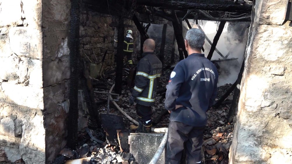 Kdz. Ereğli ilçesine bağlı Hasbeyler Köyü Merkez Mahallesi’nde Kadriye Ergenekon’a ait ahşap ev iddiaya göre elektrik kontağından çıkan yangında alevlere teslim oldu. Dün saat 12.30 sıralarında başlayan yangın kısa sürede evin tamamına yayıldı. İtfaiye ekiplerinin müdahalesi sonucu söndürülen 2 katlı yarı ahşap ev tamamen kullanılamaz hale geldi. Oğulları Erdal ve Erol Ergenekon ile birlikte yaşayan Kadriye Ergenekon çıkan yangında evden hiçbir eşyasını kurtaramazken, 80 yumurta tavuğu ve 100’e yakın civciv telef oldu. Yangınla ilgili jandarma, itfaiye ve Zonguldak AFAD ekipleri rapor tutarken, Hasbeyler Köyü Muhtarı Hasan Duman en büyük sevinçlerinin can kaybı yaşanmaması olduğunu belirterek, ailenin evini yeniden yapmak için el birliği ile mücadele edeceklerini söyledi. Duman gazetecilere yaptığı açıklamada “Bugün köyümüz büyük bir yangın atlattı. Bugün saat 12:30 civarında komşumuzun evinde yangın olduğu ihbarını aldık. Bereket ki evde hiç kimsenin olmadığı bir zamanda çıkmış, muhtemelen elektrik tesisatından çıktığı tahmin ediliyor. Can kaybımız yok çok şükür, önemli olan da buydu. Ama ev tamamen kül oldu fakat bizim bu yaraları kısa sürede saracağımızı tahmin ediyorum. Ailemiz zaten maddi durumu iyi olmayan bir aileydi. 2 genç kardeş anneleriyle birlikte yaşıyorlardı, babalarını da yakın zamanda kaybettiler. O nedenle burada birlik beraberliğin ve dayanışmanın önemi çok değerli. Biz Hasbeyler ve gönlü güzel insanların destek vereceğine, kısa sürede bu yaranın sarılacağına, onlara eskisinden daha güzel bir yuva kurulacağına inanıyorum. Genç arkadaşlar tavukçuluk yapıyordu. 80-100 civarında tavukları telef oldu. Tabi evden hiçbir şey alamadılar. Eski yapıydı zaten tamamen kül oldu. Yurtdışında yaşayan bir gurbetçimiz sağ olsun evini açtı. Yarın da o ev için biz tüm eşyalarını temin edip evlerini düzeceğiz. Yarın geçici barınma konusunu halledeceğiz. Ev yapılıncaya kadar da orada barınmalarına devam edecekler. Kalıcı barınma sorununu da kısa sürede halledeceği inşallah.” Dedi.