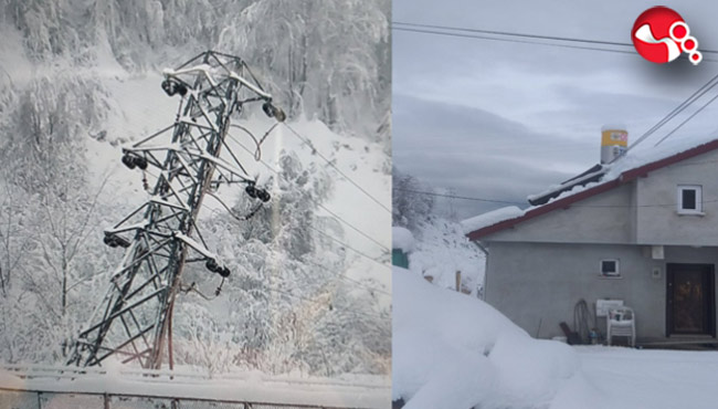 Zonguldak'ın Ereğli ilçesinde etkisini gösteren yoğun kar yağışı yüksek gerilim hattı direğinin devrilmesine neden oldu. Elektrik telleri evlerinin üstüne düşen 4 kişilik aile mağdur oldu.