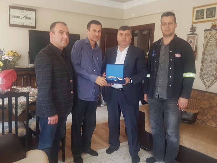Ercan, İş Yerleri Baş Temsilcisi Turgay Kavak ve Ünite Temsilcisi Murat Ok ile birlikte gerçekleştirdiği ziyarette, Çubukçuoğlu'na bir kez daha geçmiş olsun dileğinde bulundu.Ercan, sağlık durumu ile ilgili bilgiler aldığı Çubukoğlu'na, ziyaretin anısına içinde 2 adet kahve fincanı bulunan hediye takdim etti.