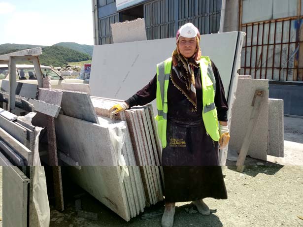 Zonguldak'ın Ereğli ilçesinde oğluyla mermer atölyesi işleten 1958 doğumlu Hamide Akyıldız, hem dört çocuğu ve ev işleriyle uğraşıyor hem de erkek işi olarak görülen mesleğinde atölyede hazırladığı ürünleri inşaatlara gidip monte ediyor.