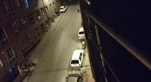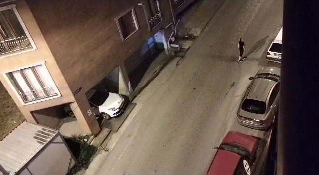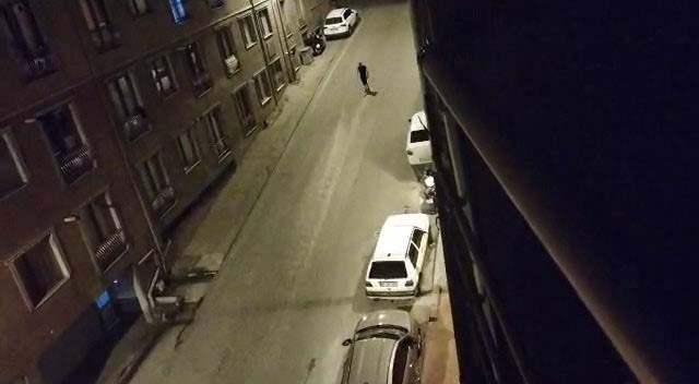 Çevredeki vatandaşların haber vermesi üzerine olay yerine polis ekipler çağrıldı. Olay yerine gelen polis ekipler şahsı kontrol altına alarak karakola getirdi. O anlar amatör kameraya yansıdı.