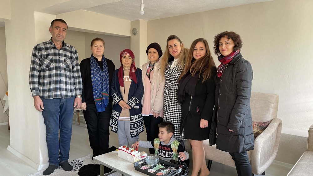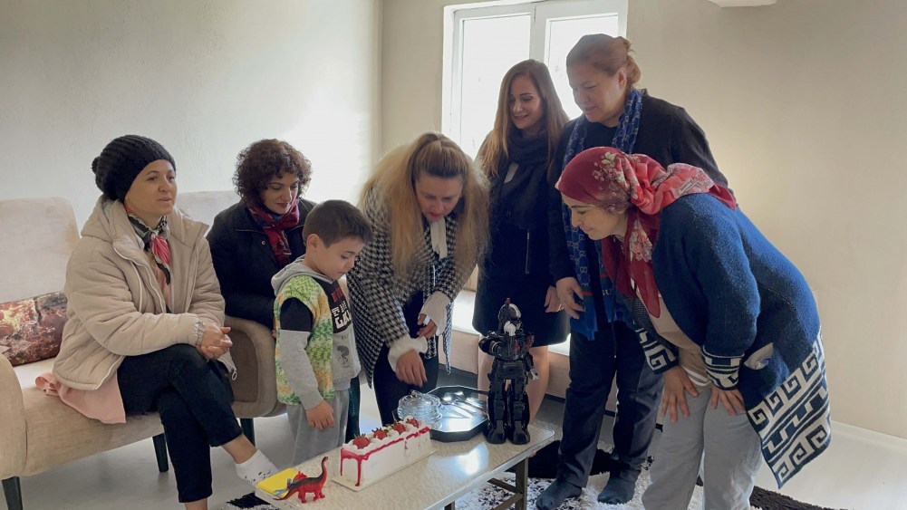 Evin 5 yaşındaki miniği Alperen, bu kez yüzündeki tebessümle mutlu olduğunu söyledi. Küçük Alperen getirilen oyuncaklarla oynarken bir taraftan da kendisi için getirilen pastayı keserek mutluluğunu paylaştı.