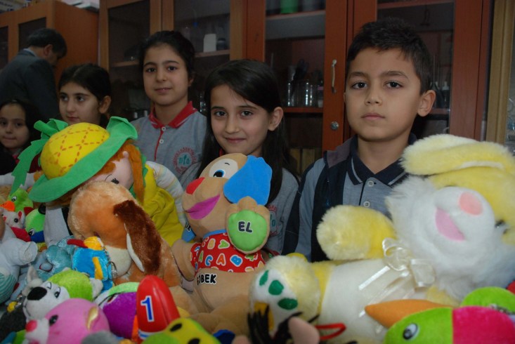 oyuncaklarını toplayarak, Muş'taki Alazlı İlköğretim Okulu öğrencilerine