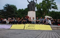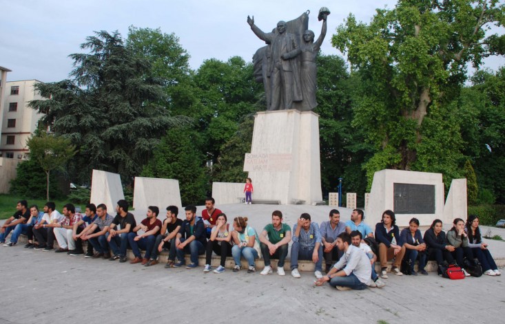 izin verilmedi. Üniversiteli öğrenciler, emniyet binasının karşısında bir süre