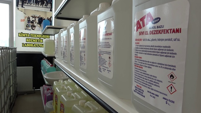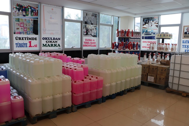 Samsun'da “fabrika gibi okul” olarak anılan Atakum Mesleki ve Teknik Anadolu Lisesi korona virüs döneminde ürettikleri hijyen ürünleri ile bu yıl 5 milyon TL ciro elde etmeyi başardı.