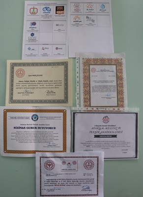 Okul olarak 14 marka başvurusu yaptıklarını belirten müdür Melek Çelebi, “Biz kimya teknolojisi alanı olarak ‘Atakimya’ markası ile üretime devam etmekteyiz. Ancak tüm alanlarımızı içine alan 14 marka başvurumuzu yaptık. Bu markalarımız onaylandı. Şimdi tescil işlemleri beraberinde yürüyecektir. Alanlarımızın hepsi alanlarına uygun bir şekilde ciddi çalışmalar yapmaktadır. Her alanımız birbirinden kıymetli, öğretmenlerimiz şu aşamada inşaat teknolojisi alanı, elektrik teknolojisi alanı eğitim materyalleri adı altında video çekimlerine de devam etmektedir. İnşaat teknolojisi alanının ahşap dalı çok güzel ahşap materyaller oluşturmaktadır” diye konuştu.