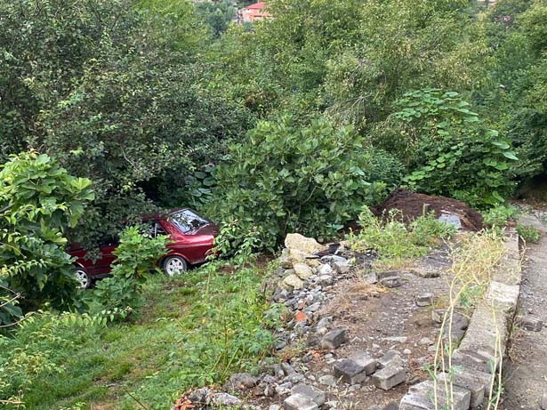 Zonguldak’ta freni boşalan otomobil 20 metreden bahçeye uçtu. Kazada aracın peşinden koşan 2 çocuk yaralandı.