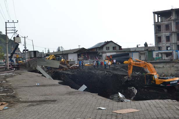 sırasında yolda göçük meydana geldi.