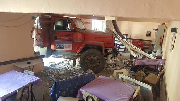Zonguldak'ta kullandığı kamyonun hakimiyetini kaybeden sürücü kahvehaneye çarparak durabildi. Olayda ölen ya da yaralanan olmazken facianın eşiğinden dönüldü.