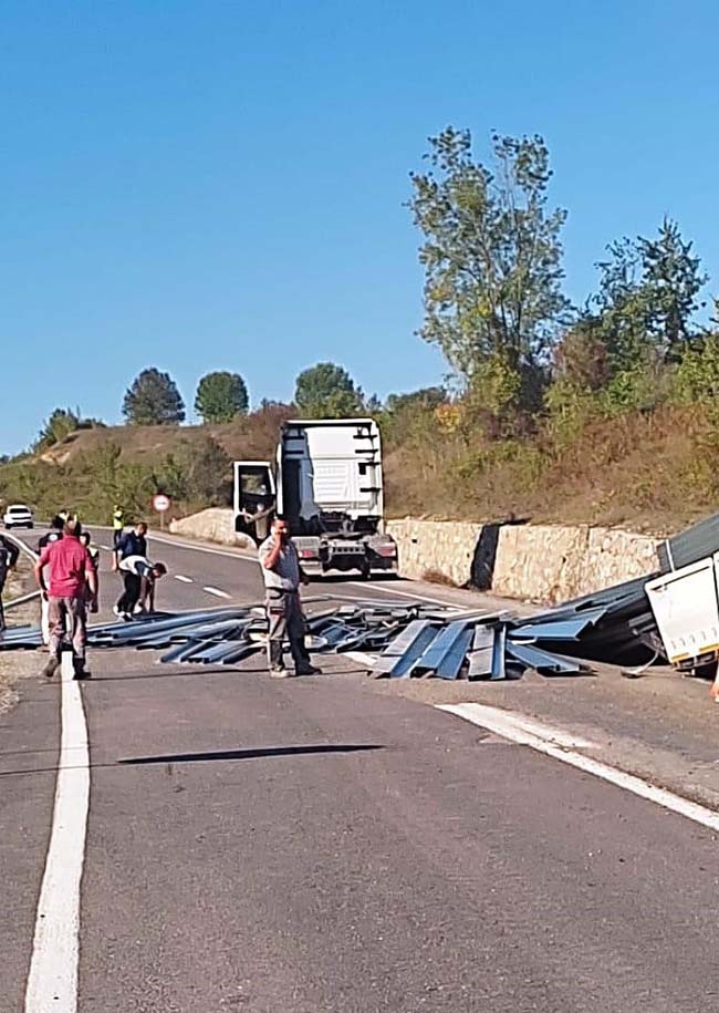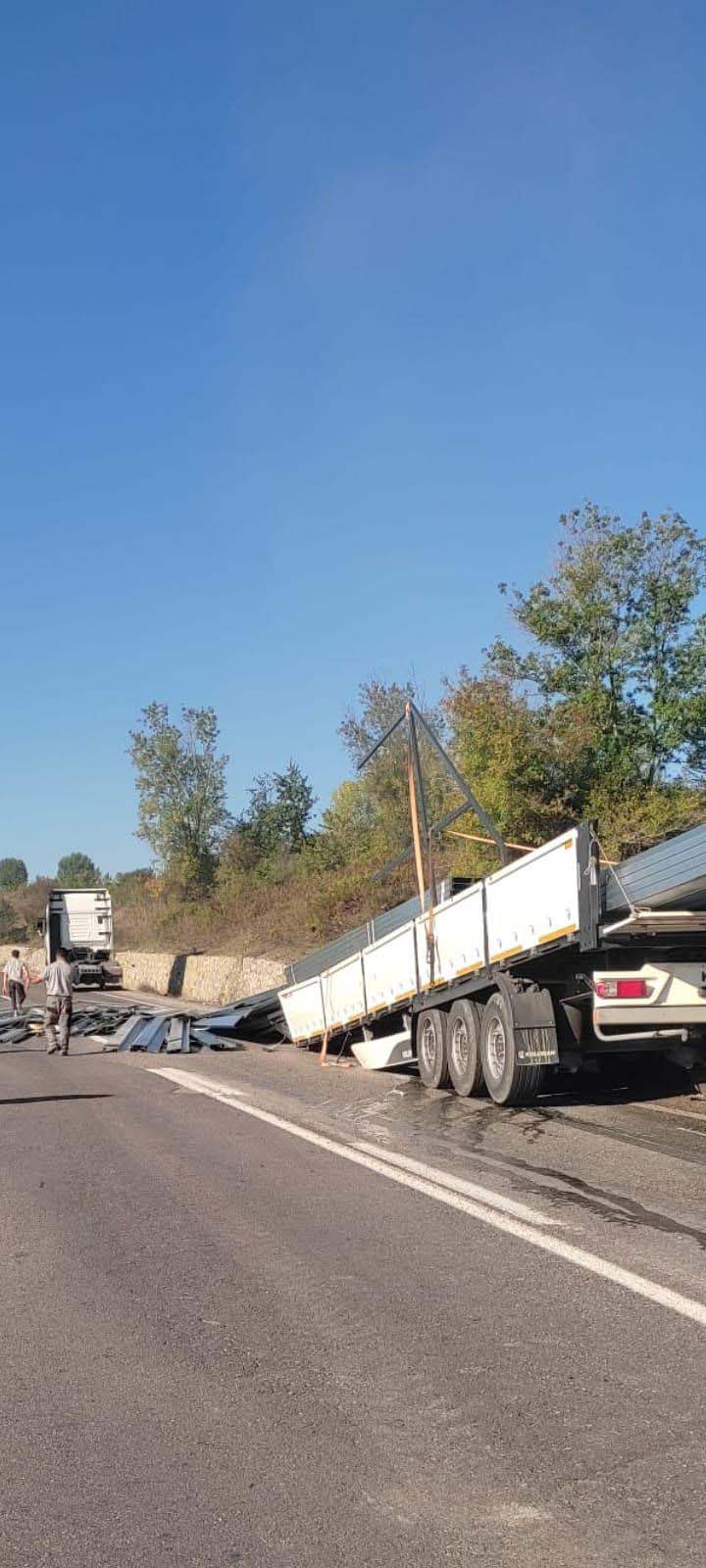 Kozcağız-Perşembe yolunda seyir halindeki dorse, tırdan ayrıldı. Yüklü demirler yola saçılırken büyük bir facianın eşiğinden dönüldü.
