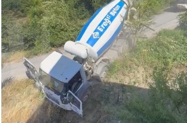 Olay, ilçeye bağlı Kepez Mahallesi Dağ Evleri mevkiinde meydana geldi. İddiaya före, yoldan çıkan beton mikserini kurtarmak amacıyla olay yerine iş makinesi getirildi. İş Makinesi Operatörü halat ile bağlanan beton mikserini çekmeye çalıştı. Bu sırada çekme halatı koptu. Beton mikseri uçuruma doğru ilerlediği sırada, mikser sürücüsü aracı son anda durdurdu. Daha sonra ise yapılan çalışma ile mikser bulunduğu alandan çekerek çıkarıldı. O anlar cep telefonu ile görüntülendi.