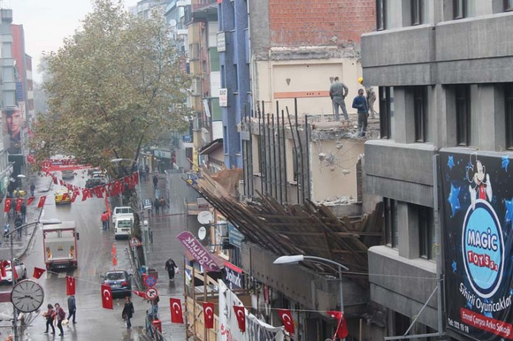 Zonguldak'ta yıkım çalışması yapılan bir binadan yaya