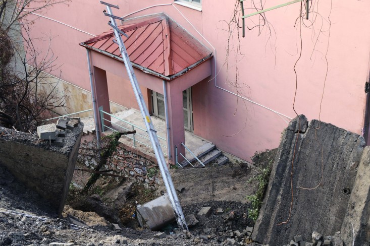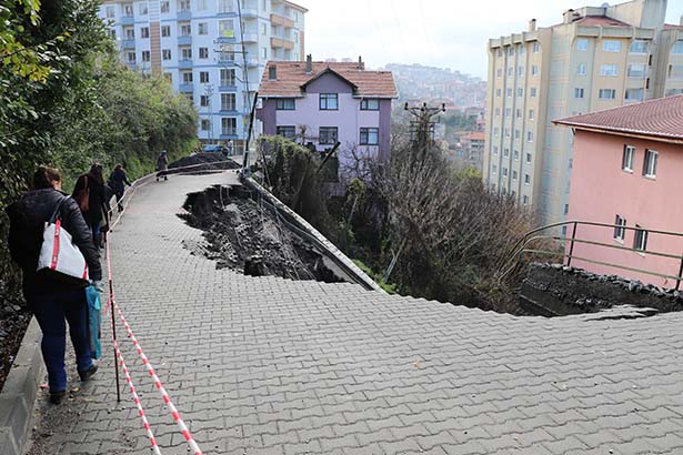 Zonguldak'ta yağmur nedeniyle mahalleye ulaşımın sağlandığı yol, alt tarafında bulunan okul binasının üzerine çöktü. Olayın gece meydana gelmesi büyük bir faciayı önledi.