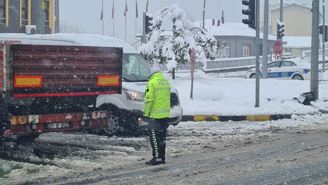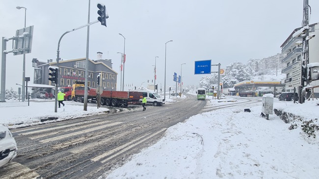 İddiaya göre, seyir halindeki tır sürücüsü, sürücünün aşırı kar yağışı sonucu kayganlaşan yolda direksiyon hakimiyetini kaybetmesi sonucu kayarak trafik lambasına çarptı. Kazayı göre çevredeki vatandaşlar 112 sağlık ekiplerine haber verdi. Kısa sürede olay yerine ulaşan 112 sağlık ekipleri kazada yaralı olmadığı için bölgeden ayrıldı. Tırın dorsesi kupadan çıktığı için bir müddet yol trafiğe kapandı. Tır ve dorsesinin kaldırılmasıyla yol trafiğe tekrar açıldı.