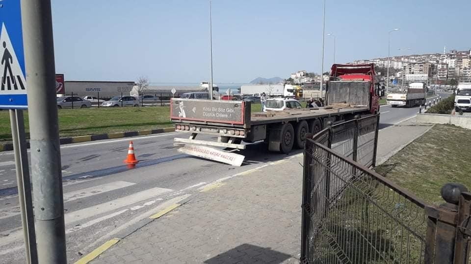 İddiaya göre, seyir halindeki TIR sürücüsü aşırı hız sonucu seyir halinde 67 AAC 506 plakalı otomobile çarptı. Çarpmanın şiddetiyle otomobil kullanılamaz hale gelirken şans eseri yaralanan olmadı. Yol tek şeritten verilirken otomobil çekici yardımıyla kaldırılmasıyla trafik akışı normale döndü. Olayla ilgili soruşturma başlattığı öğrenildi.
