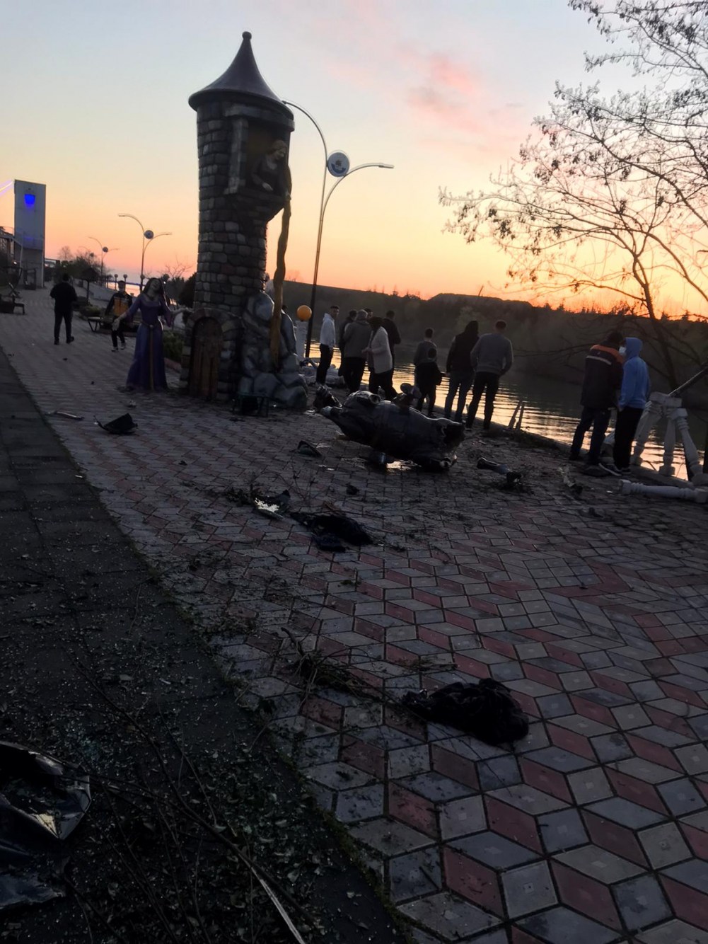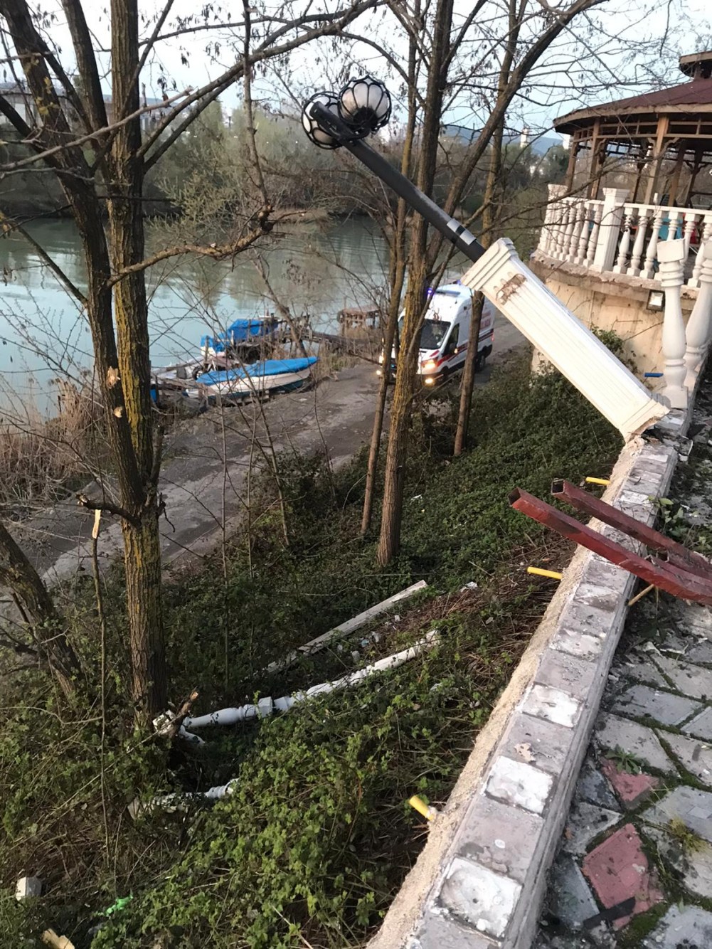 Karadeniz Ereğli İlçesinde sürücüsünün direksiyon hâkimiyetini kaybettiği otomobil yoldan çıkıp parka daldı. Buna rağmen durmayan otomobil Gülüç çayına uçarak durabildi. Kazanın iftar saatine denk gelmesi ise olası bir facianın önüne geçildiği şeklinde yorumlandı.