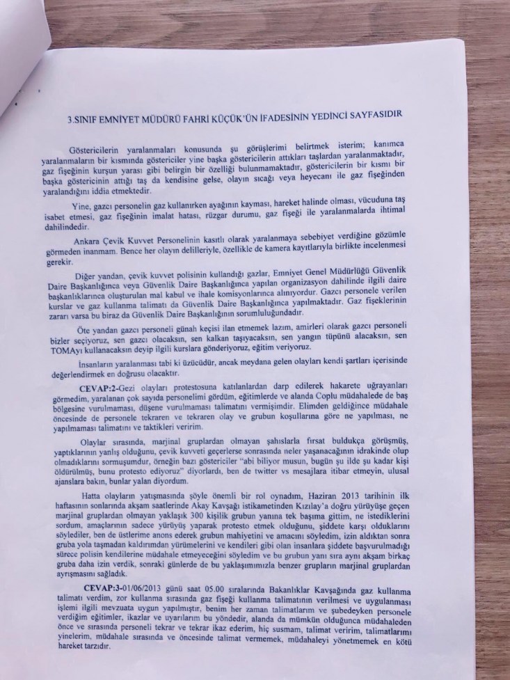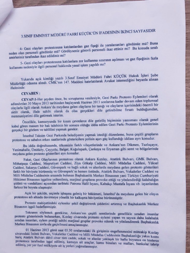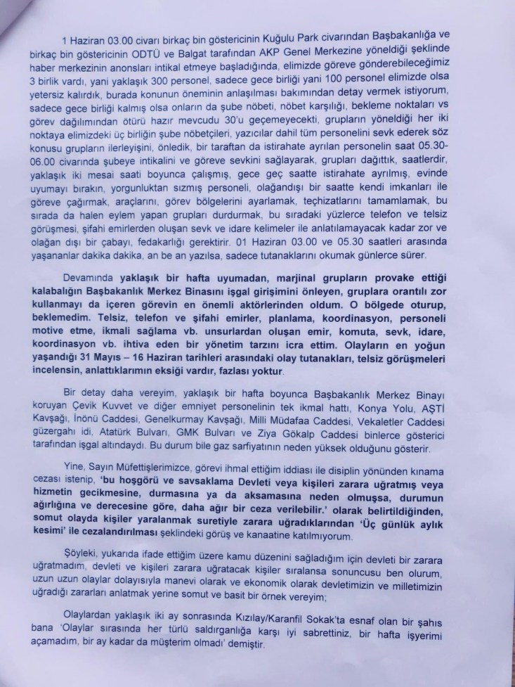 Çıkmadan önce kendisinin el altından gizli gizli görüştüğünü, bana yönelik entrikada rol aldığını bildiğim fetöden açıktan dönmüş boşkomisere vekaleti vermemesini, merkezdeki ikinci sınıf emniyet müdürlerinden birisini yerime atamasını, kendisinin bilmediği farklı konuların olduğunu devlet terbiyesi içerisinde söyledim ama riyakarca daha önce söylediğim konulardan birini bile söylemediğimi belirtti,