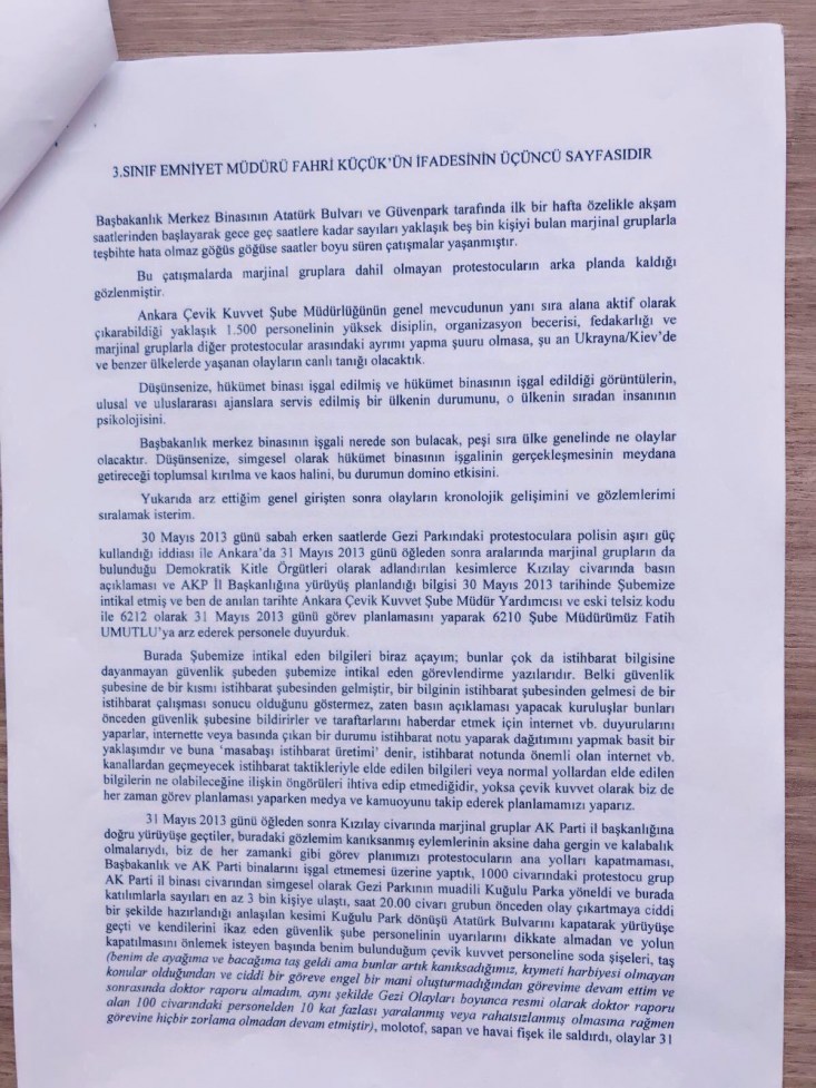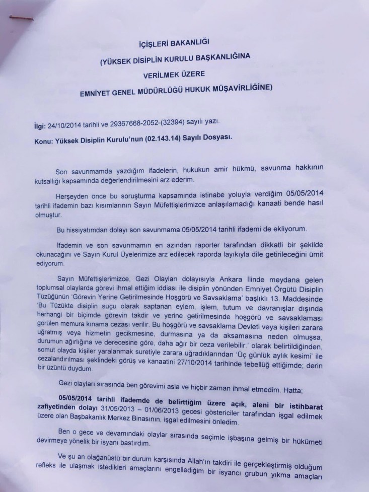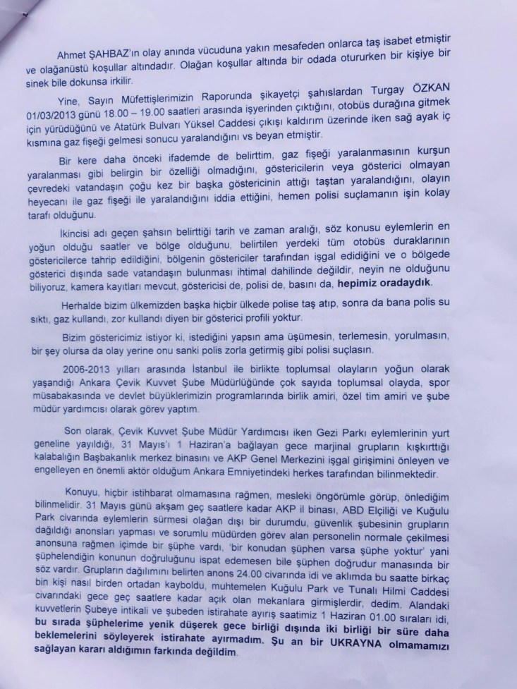 Peki ben ne yapmışım, Ukrayna'daki gibi, Mısır'daki gibi, İstanbul'da Gezi Parkında meydana gelen bir olayı, kendisini marksist leninist zanneden ancak liderlerinin batılı ülkelerde üstlendiğinden ve desteğinde hareket ettiğinden bihaber grupların (bunların hiçbir zaman ajite edilen duygusallık dışında eski SSCB ile irtibatı olmamıştır) provake ettiği kalabalığın Kızılay'dan, Güvenpark'tan, Akay'dan eski Başbakanlık binasına hükümeti düşürmeye yönelik kalkışmasını, HİÇBİR İSTİHBARAT BİLGİSİ OLMADAN, SOKAĞI İZLEYEREK KENDİ ÖNGÖRÜMLE ve ANILAN TARİHTE ÜSTÜMDEKİ TÜM RÜTBELİLERİN FETÖCÜ OLMASINA RAĞMEN TAMAMEN VE TAMAMEN KENDİ İNİSİYATİFİMLE GECENİN BİR VAKTİ MÜDAHALE EMRİ VEREN, HÜKÜMETİN DÜŞMESİNİ, KAOSA DÜŞMEMİZİ ENGELLEYEN VE SONLANDIRAN ANKARA ÇEVİK KUVVET MÜDÜR YARDIMCISIYIM.