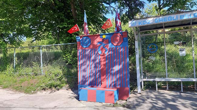 Kdz. Ereğli ilçesinde her sene şampiyon olan takımın renklerine boyanan fanatik çeşme bu sene de borda-maviye büründü. Balı Mahallesi’nde ikamet eden gençler geçtiğimiz yıl Beşiktaş’ın renklerine boyadıkları çeşmeyi bu yıl da Trabzonspor’un renklerine boyadı. Mahalle sakinlerinden erkek kuaförü Trabzonspor taraftarı Engin Eryiğit çeşmenin tüm boya malzemelerini kendi aralarında topladıkları parayla aldıklarını ve boyama işlemini de kendileri yaptıklarını söyledi. Çeşmenin bir gün bordo-mavi renklere boyanacağının hayalini hep kurduğunu belirten Eryiğit, "Hayallerimiz bu sene gerçek oldu. Trabzonspor’un şampiyonluğunun ardından mahallemizdeki fanatik çeşmeyi bordo mavi renklere boyamaktan çok mutlu oldum. 38 yıl aradan sonra bizlere şampiyonluğu yaşatan Trabzonspor yönetimini teknik heyet ve futbolcular olmak üzere emeği geçen herkese teşekkür ediyorum. Dileğim tabiki Trabzonspor’un önümüzdeki sezonlarda da şampiyon olup Avrupa’da başarılar yakalaması" dedi.