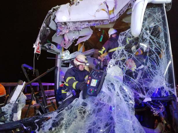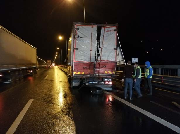 TEM Otoyolu Bolu dağı kesiminde otobüs aynı istikamete giden kamyona arkadan çarptı. Kazada 1 ağır 16 kişi yaralandı. Direksiyon mahallinde sıkışan otobüs şoförü ile muavin itfaiye ekipleri tarafından kurtarıldı.