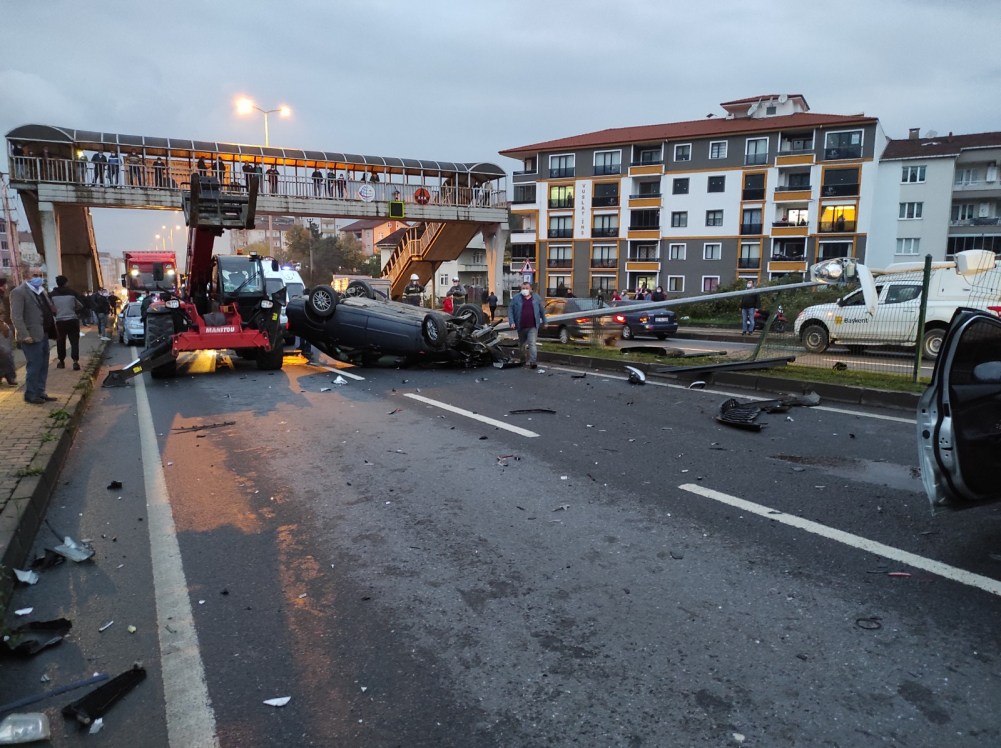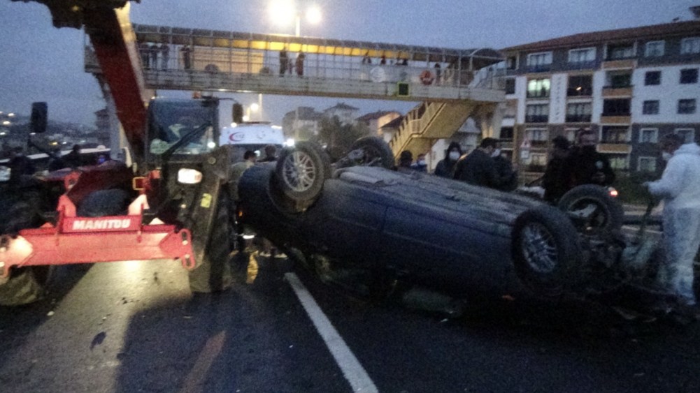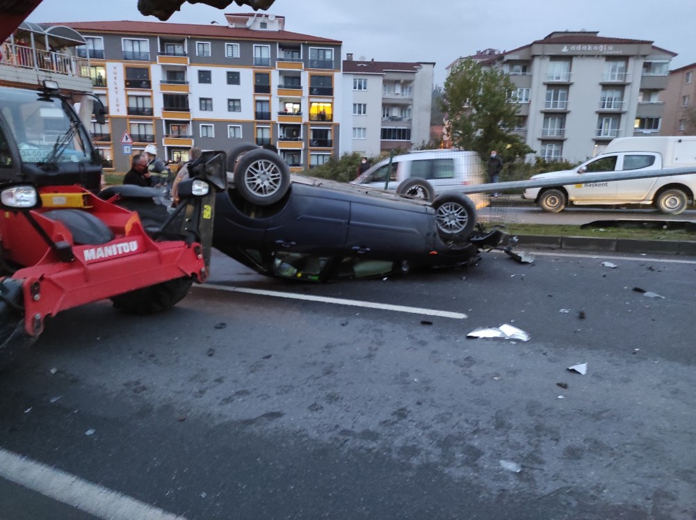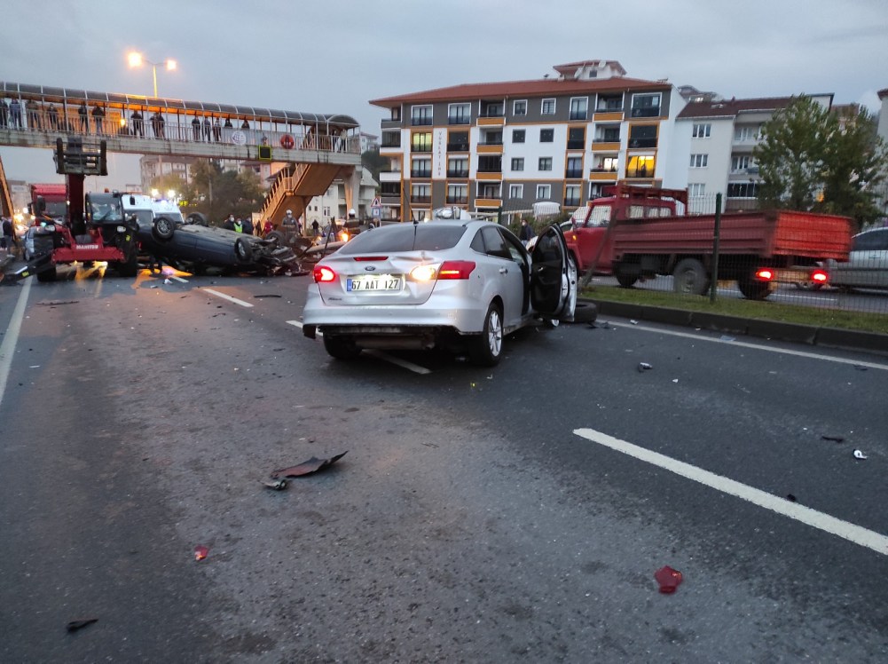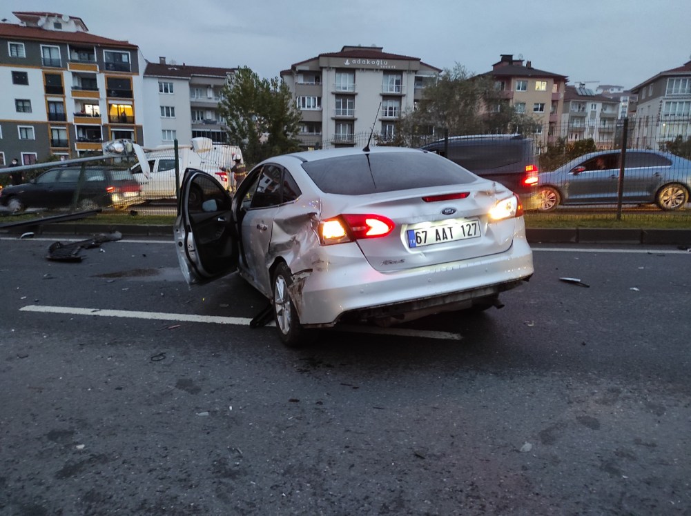 Kaza saat 17.50 sularında Kepez Mahallesi Profesör Muammer Aksoy Caddesi üzerinde meydana geldi. İddiaya göre Rıdvan Ö.’ın (24) kullandığı ve aşırı süratli olduğu iddia edilen otomobil, ilk olarak önünde İlker B.’ın (32) kullandığı iş makinesi ardından da İş makinesinin yanında ilerleyen Birol S.’nın (24) kullandığı 41 RE 263 plakalı otomobile çarptı. Çarpmanın etkisi ile Rıdvan Ö.’ın kullandığı araç hurdaya dönerken, Birol S.’nın kullandığı otomobil ise takla atarak durabildi. İş makinesinde de maddi hasar meydana geldi. Bu sırada arkadan gelen 67 DS 644 plakalı motosiklet sürücüsü Yunus Emre H.(19) ise kazayı fark edemeyince araçlara çarpmamak için kaldırma çarparak durabildi. Çalılık alana uçan motosiklet sürücüsü Yunus Emre H. ile kazada araçlarda bulunan İnci G. (31) A.G. (3), E.A. (2) ve Sevda A. (25) yaralandı. Yaralılar olay yerinde yapılan ilk müdahalenin ardından Devlet Hastanesine kaldırıldı.