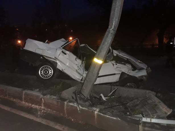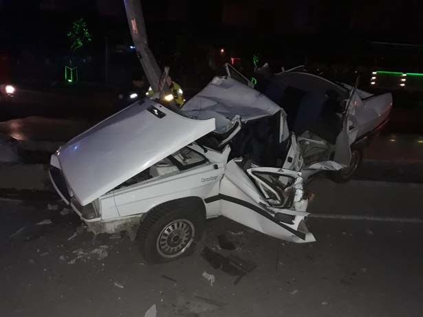 Otomobil önce refüje, ardından elektrik direğine çarptı: 2 ölü