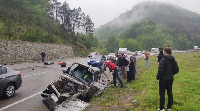 Zonguldak Ankara Karayolu üzerinde kontrolden çıkan otomobil istinat duvarına çarparak taklalar atarak durabildi. Kazada 1 kişi yaralanırken 3 kişi hayatını kaybetti