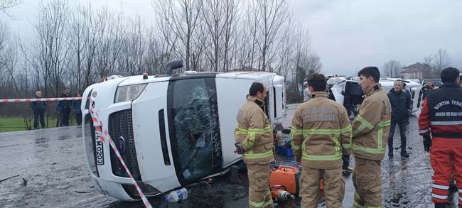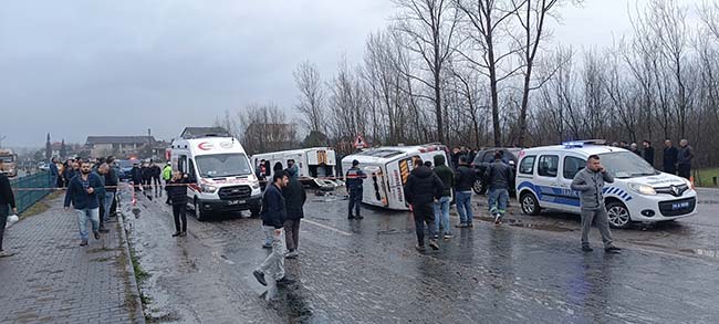 Bartın'da iki servis aracının çarpışarak devrilmesi sonucu ilk belirlemelere göre, 1 kişi hayatını kaybederken, 15 kişi de yaralandı.
