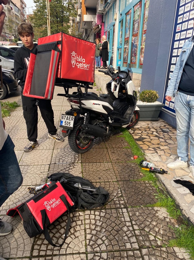 Kaza, Müftü Mahallesi Uğur Mumcu Caddesi üzerinde meydana geldi. İddiaya göre; A.C.S. idaresindeki motosiklet, önündeki S.B. idaresindekİ otomobile ardından park halindeki 67 AFU 891 plakalı araca çarptı. Çarpmanın etkisi ile yaralanan motosiklet sürücüsü A.C.S. için sağlık ekiplerine haber verildi. Kısa sürede olay yerine gelen sağlık ekipleri yaralı sürücü A.C.S.’ yi ambulansa alarak yaptıkları ilk müdahalenin ardından hastaneye kaldırıldı. Hastanede tedavi altına alınan A.C.S.’nin hayati tehlikesi olmadığı öğrenildi. Güvenlik kameralarına yansıyan kazada, park yerine girmek isteyen otomobile sağdan gelen motosikletin çarptığı, sürücünün ise motordan fırlayarak park halindeki otomobile çarpması görülüyor.