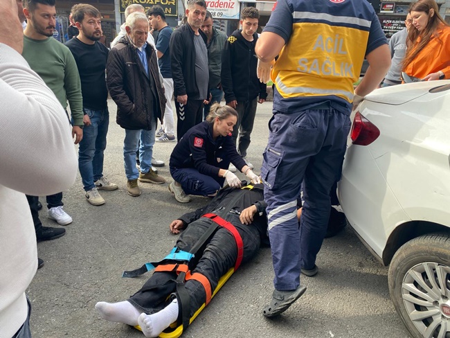 Karadeniz Ereğli ilçesinde motosiklet sürücüsü park yerine girmek isteyen otomobile çarptı. Sürücü daha sonra park halindeki başka bir otomobile çarptı.