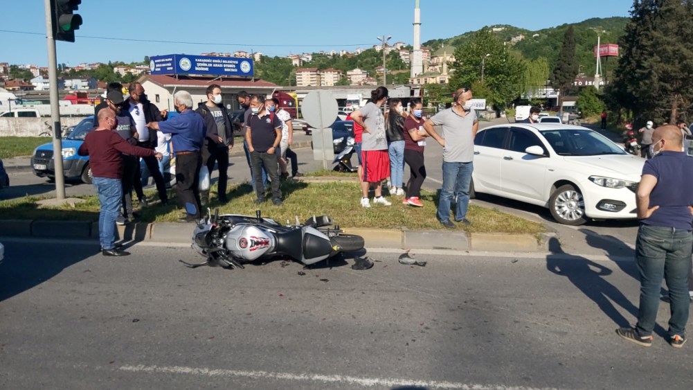 Kaza saat 17.00 sularında Kışla Mahallesi Kışla kavşağında meydana geldi. İddiaya göre Kavşaktan sanayi sitesine dönüş yapan Aykut Saygı (34) idaresinde ki 67 SG 852 plakalı otomobil ile Gülüç istikametinden Ereğli istikametine giden Fırat E. (32) idaresindeki 67 SK 038 plakalı motosiklet çarpıştı. Çarpışmanın etkisi ile otomobil dönerek durabilirken, kayarak refüje çarpan motosikletin sürücüsü Fırat E. yaralandı. Yaralı için haber verilen ve kısa sürede olay yerine gelen 112 ekipleri, yaralıya yaptıkları ilk müdahalenin ardından Özel Echomar Hastanesine kaldırdı. Sürücü Fırat E.’ın vücudunda kırıklar olduğu öğrenildi. Kazaya karışan otomobil sürücüsü Aykut S. ise ifadesi alınmak üzere polis merkezine götürüldü. Kaza ile ilgili soruşturma başlatıldığı öğrenildi.