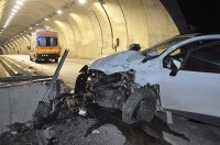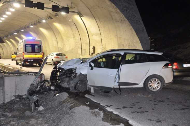 otomobilin tünel girişindeki duvara çarpması sonucu meydana gelen trafik