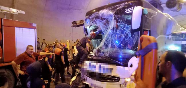 Çarpmanın şiddeti ile yolcu otobüsünün ön camı patlarken, muavinin yüzüne kırılan cam parçaları geldi. Yolcular ise büyük şok yaşadı. Kazayı gören vatandaşların ihbarı üzerine olay yerine çok sayıda ambulans ve itfaiye ekibi sevk edildi. Kaza yerine ulaşan sağlık ekipleri yaralılara müdahalede bulundu.