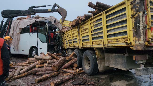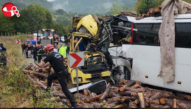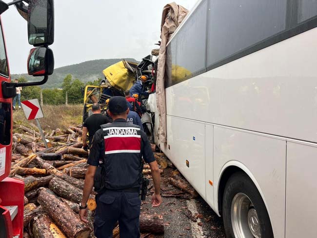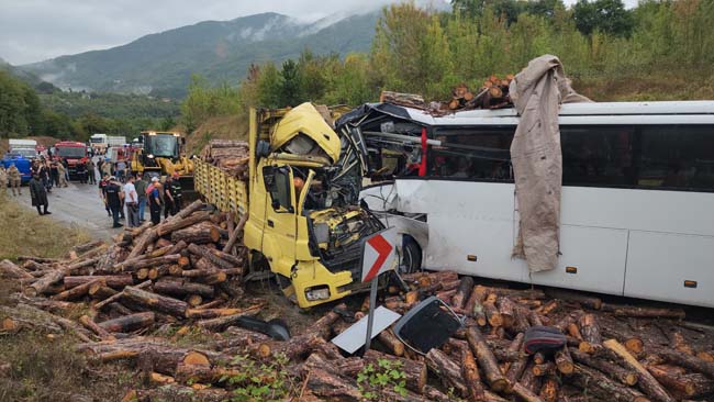 Zonguldak'ın Gökçebey ilçesinde şehirlerarası yolcu otobüsü tomruk yüklü kamyonla çarpıştı. Kazada her iki aracın sürücüsü olay yerinde hayatını kaybetti, 23 kişi de yralandı. Yaralılar Gökçebey Devlet Hastanesi'nde tedavi altına alındı.