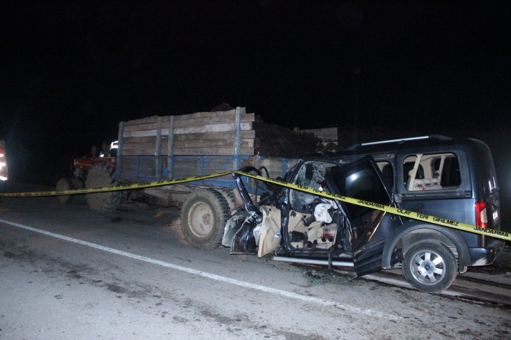 Düzce D-655 Karayolunda gübre yüklü traktöre arkadan çarpan hafif ticari araçta bulunan 1 kişi öldü, 2 kişi yaralandı.
