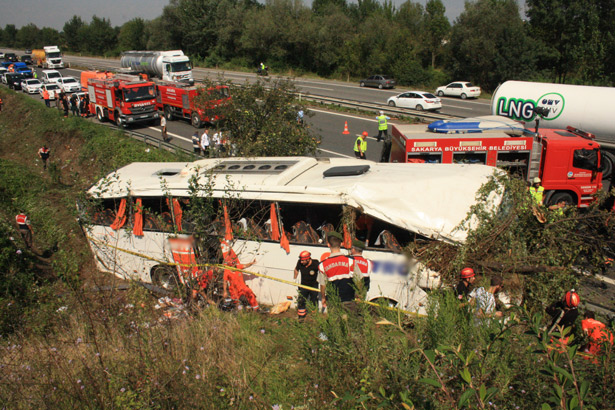 Kaza, TEM Otoyolu Akyazı Kavşağı yakınlarında meydana geldi. İstanbul'dan Zonguldak'a gittiği öğrenilen yolcu otobüsü, henüz ismi öğrenilemeyen sürücüsünün direksiyon hakimiyetini kaybetmesi sonucu şarampole devrildi. Yol kenarındaki su kanalına çarparak savrulan otobüste bulunan çok sayıda yolcu yaralandı. Bildirilmesi üzerine olay yerine, ambulans, itfaiye ve AFAD kurtarma ekibi sevk edildi. Kurtarma ekipleri, bulundukları yere sıkışan ön koltukta oturan yolcular ile şoförü yaptıkları çalışma sonucu kurtardı. Yaralılar, olay yerindeki ilk müdahalelerin ardından Sakarya'daki çeşitli hastanelere kaldırıldı. TEM Otoyolu'ndaki trafik kontrollü olarak veriliyor.