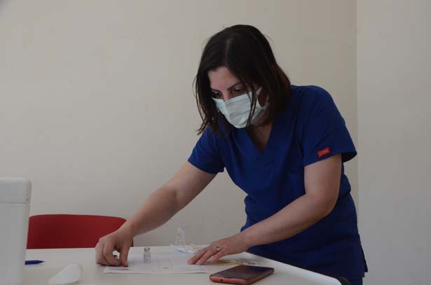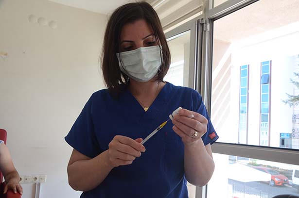 Eğitim ve Araştırma Hastanesi Aşım Birim Sorumlusu 2 çocuk annesi Çiğdem Aydın, “Ben Şubat ayında korona virüse yakalandım. Sonra aileme de bulaştı. Biraz bizim için zor bir süreç oldu, hastalığı ağır geçirdik. Çok şükür geçti ve hepimiz sağlımıza kavuştuk. Ben acilde çalışıyordum ve acil hemşiresiydim. Sonrasında burada göreve başladım ve yaklaşık 5 aydır burada çalışıyorum. Korona virüse yakalandıktan sonra ve aileme de bulaşınca bizim de bir katkımız olsun istedik ve aşı biriminde çalışmaya devam ediyorum. Pandemi sürecinin geçmesine katkıda bulunmak istedik” dedi.