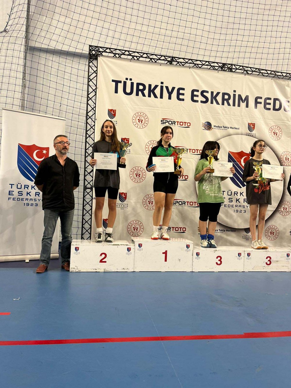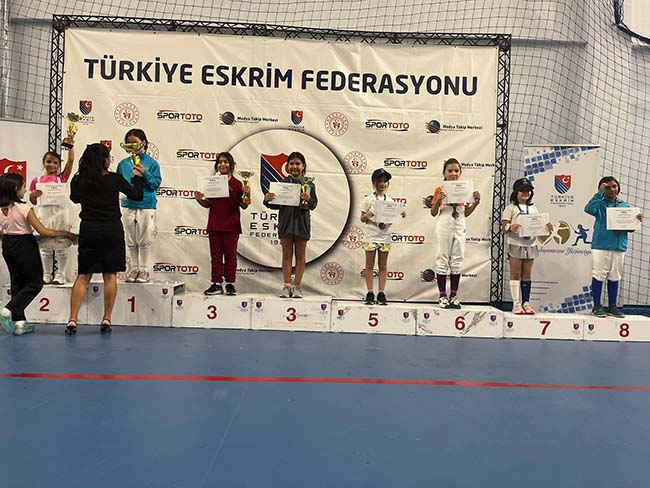 Dereceye giren sporcular madalyalarını, U14 Kadınlar Kılıçta TEF Yönetim Kurulu Üyesi Prof. Dr. Bilgehan Baydil’den, 'U10 Kadınlar Kılıç' kategorisinde ise TEF Genel Sekreter Yrd. Nihal İzgi ve Ankara Eskrim İl Temsilcisi Pelin Bulutlu Yıldırım’ın elinden aldı.
