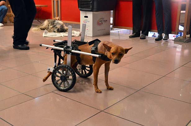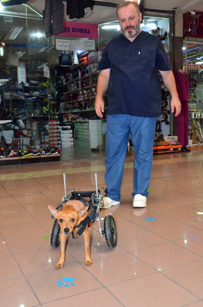 yürüme şansı yok. İnsanlar nasıl tekerlekli sandalye ile yürüyorsa bu köpeği de