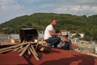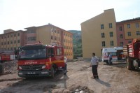 aşeron sahiplerinin çatıya çıktığı haberini alan itfaiye