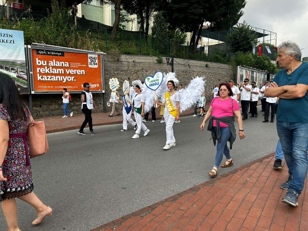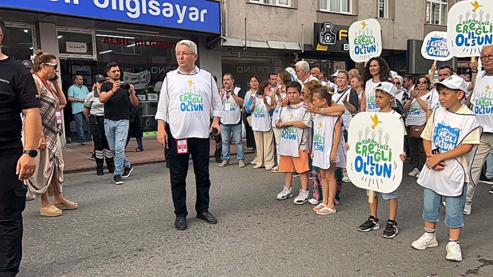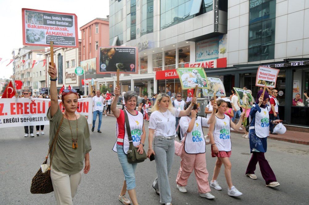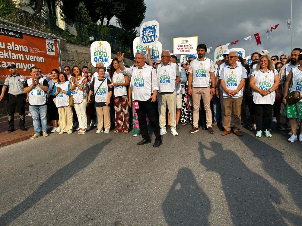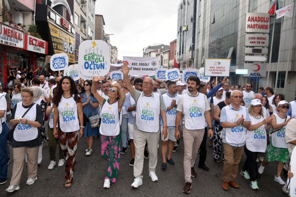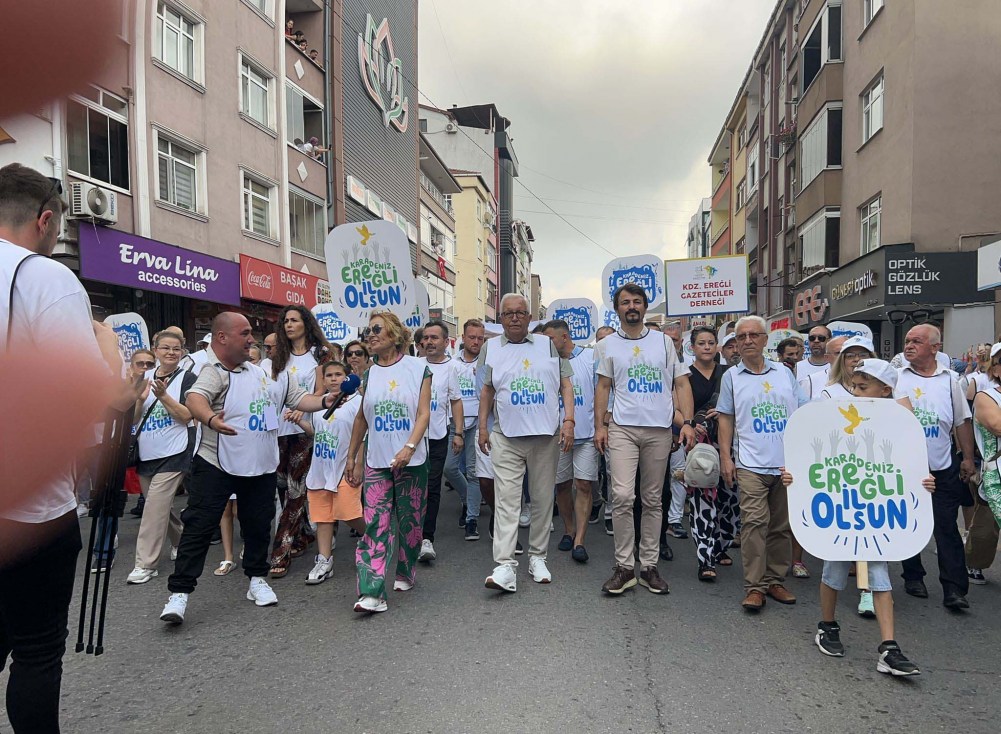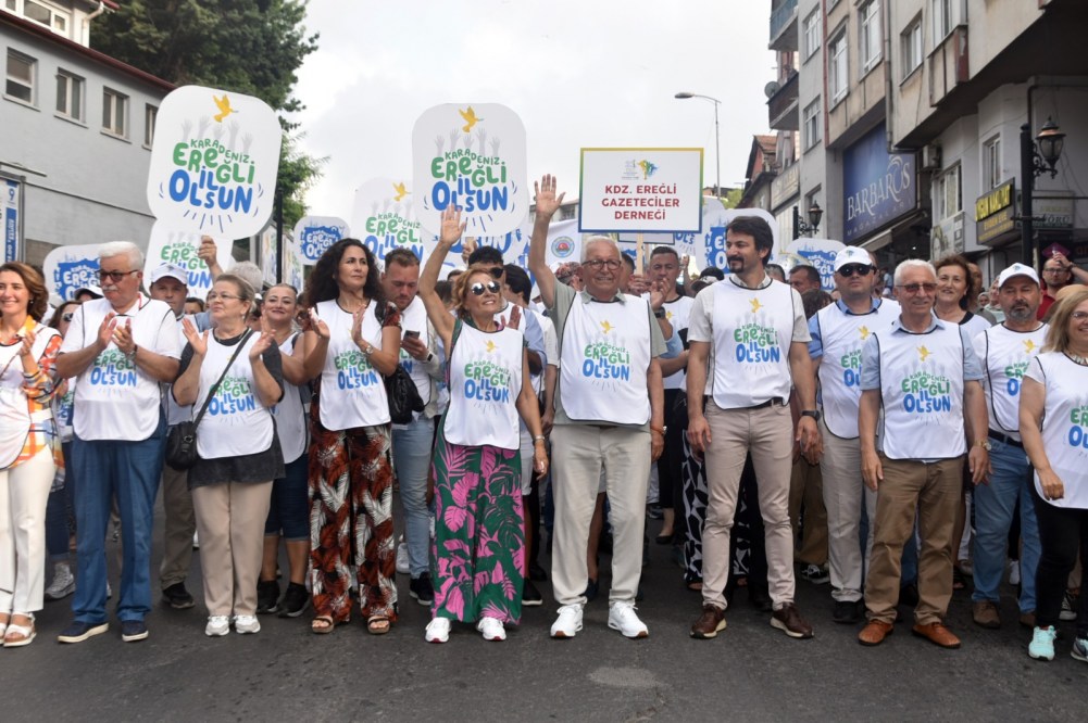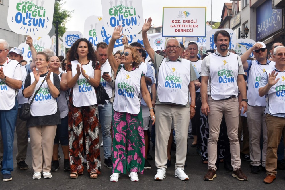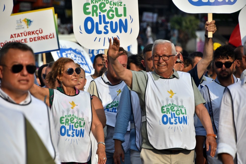 Erdemir caddesinden başlayan kortej yürüyüşüne chp Zonguldak Milletvekili Eylem Ertuğrul, Belediye Başkanı Halil Posbıyık ve eşi Neriman Posbıyık, siyasi parti temsilcileri, STK temsilcileri, muhtarlar, madenciler, şehit aileleri ve gaziler ile onbinlerce Ereğlili katıldı.