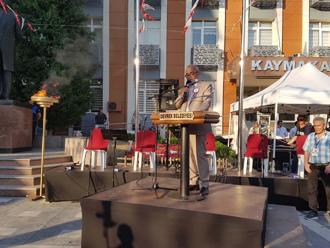 Festival açılışında konuşan Devrek Belediye Başkanı Çetin Bozkurt, ’Yine, yeni, yeniden sloganıyla yola çıktığımız, Devrek’in özlemle beklediği ve bu yıl 30 düzenlediğimiz uluslararası Devrek Baston ve Kültür Festivaline hepiniz hoş geldiniz. Devrek’te bastonculuk yaklaşık 200 yıllık bir geçmişe sahiptir. 1892 tarihli Kastamonu salnamesinde Devrek bastonundan övgüyle bahsedilmesi, Devrek bastonu tarihine ışık tutan en eski yazılı belgedir. Devrekli Aziz Salman usta, 1933 yılında Zonguldak’ta düzenlenen ‘Tasarruf ve Yerli Malı Haftasında, daha sonra 1936 yılında İzmir enternasyonal fuarında kurmuş olduğu sergilerle Devrek bastonunu ülke çapında tanıtmak için çaba göstermiştir. Daha sonraki yıllarda ise çeşitli yörelerde Devrek bastonunu tanıtma çabaları yaygınlaşmıştır. Türkiye’nin en köklü festivallerinden biri olan festivalimizin ilki 7 Temmuz 1984 tarihinde baston festivali adıyla düzenlenmiştir. Daha sonraki yıllarda “baston ve güreş festivali” adını alan festivalimiz, Devrek bastonunun sanatsal boyutunu ve adını yurt içi ve yurt dışında daha da duyurabilmek amacıyla ‘Uluslararası Baston ve Kültür Festivali’ adını alarak uluslararası boyut kazanmıştır. İlçemize bu festivalin kazandırılmasında emeği geçen dönemin belediye başkanı Sadık Hamarat, Zonguldak Milletvekili Merhum Veysel Atasoy ve baston ustalarımız ile o günden bu yana festivalin düzenlenmesinde emeği geçen herkese şükranlarımı sunuyorum. Bu festivaller bizleri ortak paydada buluşturan, kaynaştıran, sosyalleştiren, sanatımızın ve kültürümüzün öğrenilmesine yardımcı olan, bu değerleri yaşamımızın her aşamasında kendimize şiar edinerek geçmişimizle buluşmamıza katkı sağlayan çok önemli bir kültürel etkinliktir. Bu festivaller sayesinde yurdumuzun dört bir yanında ve uluslararası alanda baston denilince Devrek, Devrek denilince de akıllara baston gelmektedir. Devrek, bu coşkuyu 30.kez yaşıyor. Çeşitli sebeplerden dolayı 5 yıl düzenlenemeyen ve son yıllarda hak ettiği değerlerden uzak düzenlenen festivalimizi yeniden eski coşkusuna görkemli günlerine kavuşturmak için dolu dolu bir program hazırlamaya çalıştık. Bu yıl festivalimize Bosna Hersek, Ukrayna, Moldova, Gürcistan, Bulgaristan, Romanya gibi ülkeden 250 civarı katılım sağlayarak festivalimizi uluslararası platforma taşımayı amaç edindik. Altı gün sürecek festivalimiz içerisinde kültür, sanat etkinlikleri, sergiler, tiyatrolar, söyleşiler, çocuklarımızın ve gençlerimizin gelecekteki vizyonlarına önemli katkılar sağlayacak etkinlikler ve sizlerin coşkulu katılımlarıyla inanılmaz bir keyifle dönüşecek olan konserlerimizle, siz değerli misafirlerimize unutulmaz bir festival yaşatmayı arzuladık. Kızılcık ağacının sanata dönüştüğü şehir olan Devrek’te, bize ait olan değerimizi, sanatımızı, kültürümüzü, kardeşliğimizi, birlik ve beraberliğimizi pekiştirme imkânını sağlayarak, geçmiş ile gelecek arasında köprü vazifesi gören bu festivaller inanıyorum ki geleceğimize ışık tutarak gelecek nesillere de yol gösterici olacaktır. Rahmetli baston ustamız Münteka Çelebi’nin dediği gibi “baston her yerde bastondur, üzerinde sanat eseri varsa o Devrek bastonudur” Devrek bastonunu diğer bastonlardan ayıran tek özelliği kızılcık ağacından yapılması değil, emek ve özveriyle birleşerek sanat eserine dönüşmesidir. Ulu Önder Mustafa Kemal Atatürk “sanatsız kalan bir milletin atardamarlarından biri kopmuş demektir” diyerek sanatın önemini vurgulamıştır. Bizler de bu bilinç doğrultusunda hareket ederek baston sanatını ve kültürümüzü gelecek kuşaklara ve tüm dünyaya aktarmak için bu festivalimizde olduğu gibi bundan sonraki dönemlerde de var gücümüzle çalışacağız. Bu sanatı günümüze kadar ulaştıran baston ustalarımıza, zanaatkârlarımıza, bu festivalin hazırlanmasında gecesini gündüzüne katarak çalışan tüm belediye çalışanlarımıza, katkıda bulunan sivil toplum kuruluşlarına, festivalimize katılan misafirlerimize ve çok değerli sanatçılarımıza teşekkür ediyorum. Her günümüzün festival heyecanı ve coşkusuyla geçmesi dileğiyle hepinizi en içten duygularımla selamlıyor, iyi eğlenceler diliyorum” diye konuştu.