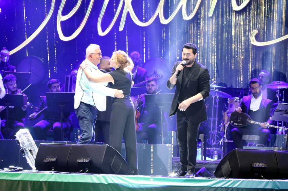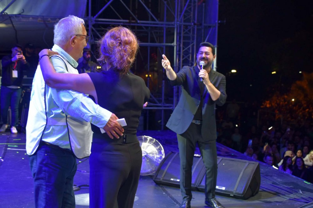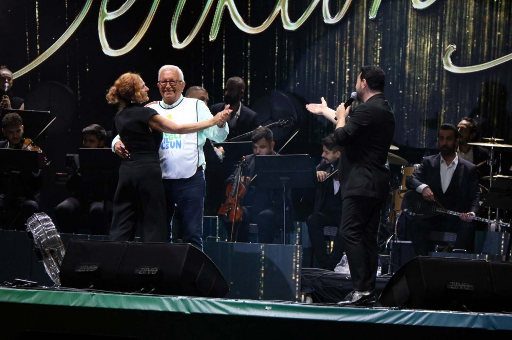 Başkan Posbıyık ve eşi Neriman Posbıyık, bir süre sahnede Kaya’nın şarkıları eşliğinde dans etti.
