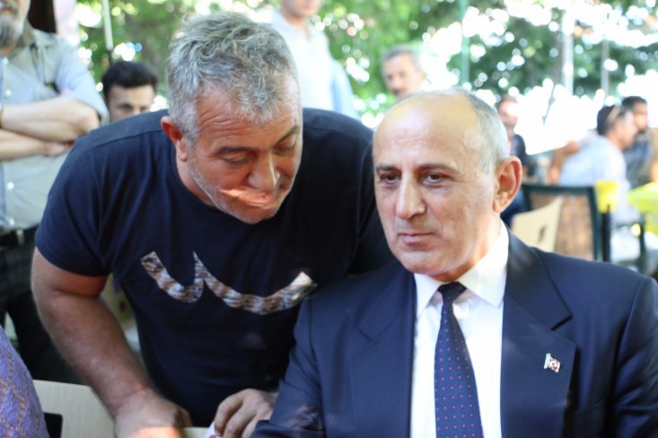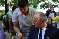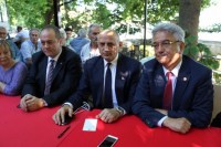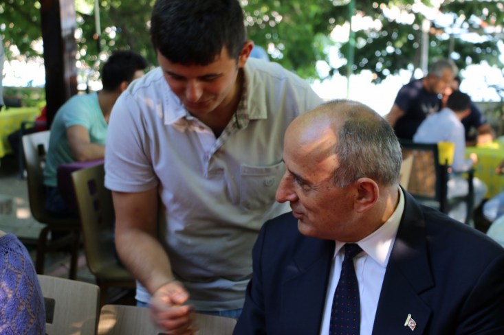 Dursun Çiçek gazetecilere açıklamasının ardından toplantıya katılan partililerle ve vatandaşlarla sohbet etti.