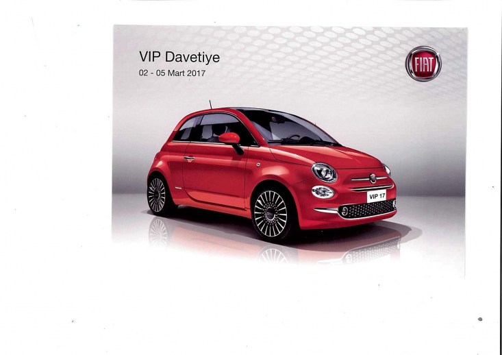 "02-05 Mart tarihleri arasında FİAT Keleşsan Otomotiv Bayisi'nde 4 gün sürecek olan VIP Günleri'ne bir yakınınızla birlikte sizleri davet etmekten mutluluk duyarız. VIP Günleri sıradan bir etkinlik olmayacak. 02-05 Mart tarihleri arasında gerçekleşecek VIP Günleri'ne girişler sadece VIP Giriş Kartlarıyla yapılabilecek. VIP Giriş kartınız etkinliğe katılım teyidinizin ardından adresinize özel olarak gönderilecek. Bu sıradan bir etkinlik değil. Eşi benzeri olmayan ve sadece bir defa karşınıza çıkabilecek bir satış etkinliği. Bu etkinlik süresince her zaman elde edebileceğiniz bayi indirimlerinin yanı sıra karşınıza bir daha çıkamayacak ve FİAT tarafından tanımlanan özel bir indirimle yeni aracınıza sahip olabileceksiniz.