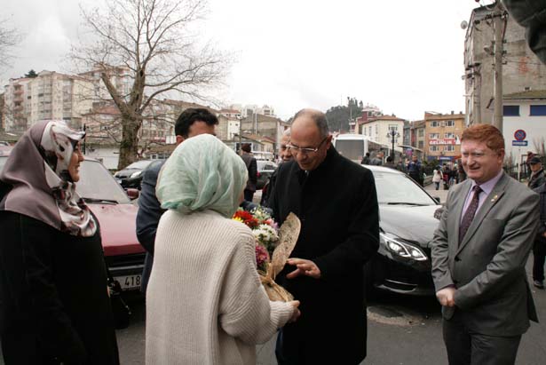 çiçeklerle karşılamasının ardından bir süre makamında Ereğli ile ilgili